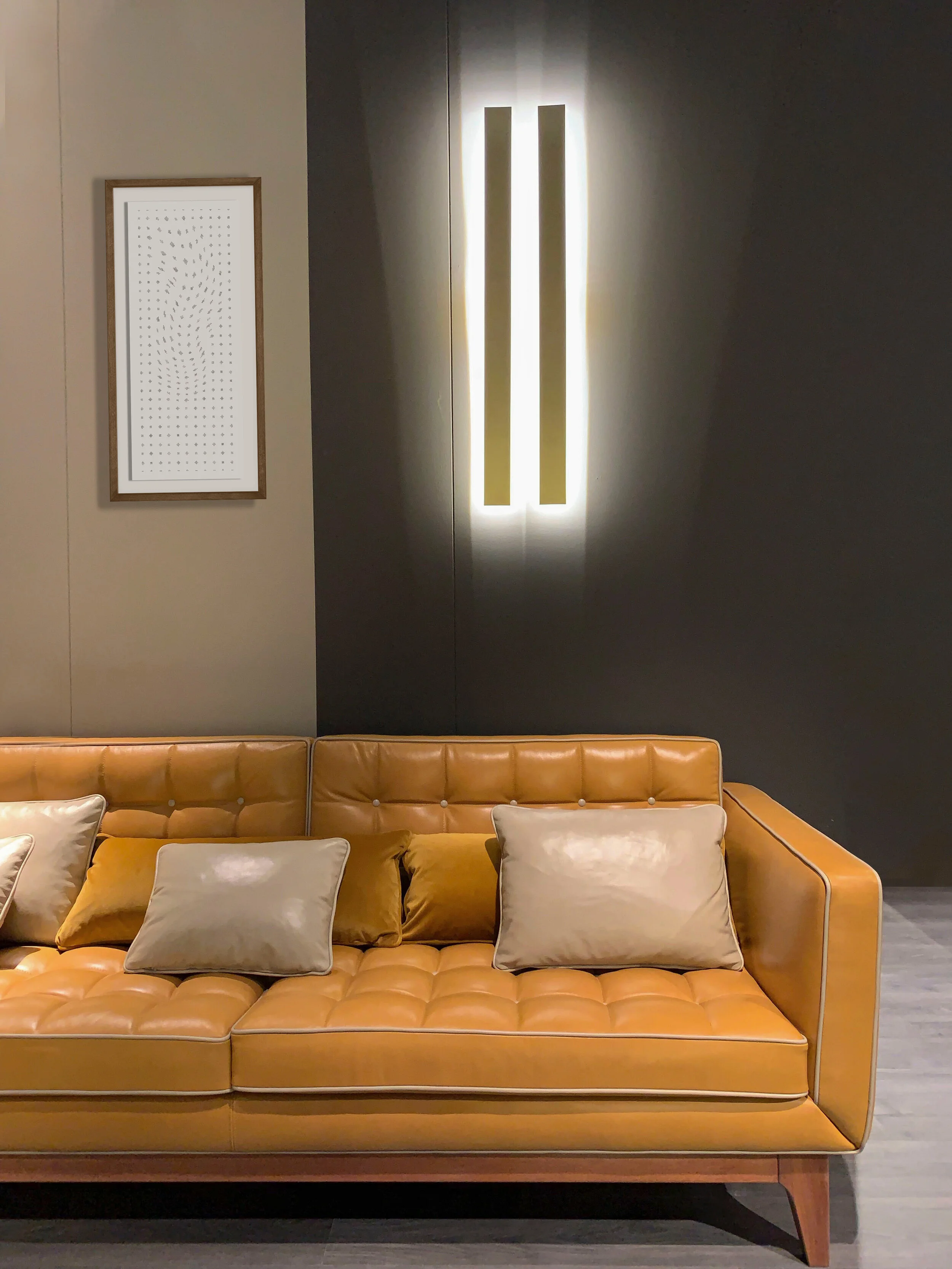 The Chaos Series Prints (in bespoke black wood frames) complimenting a minimal lounge.